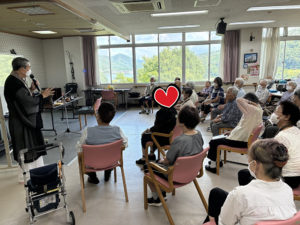令和7年8月7日(木)、安芸高田市八千代町佐々井にある明頭寺のご住職様をお招きし、デイサービスのフロアにてお念仏と法話を行いました。 ここ数年の高齢化やコロナ禍の影響で、お寺に足を運ぶ機会が減り、心苦しさを抱えておられた […]