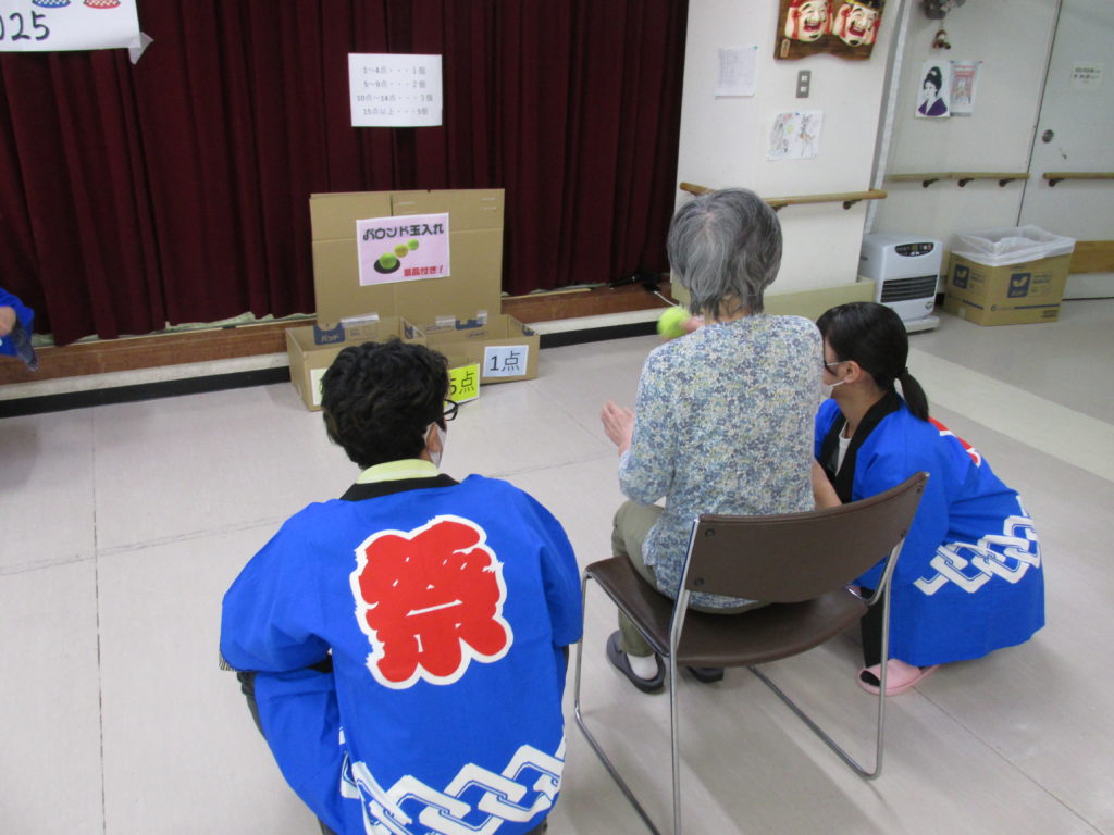 バザーでお腹がいっぱいになった後は風船釣りとバウンド玉入れに挑戦されます。