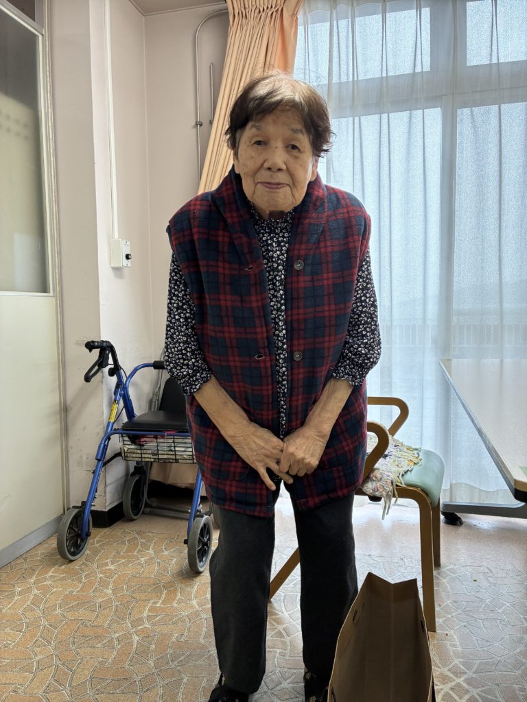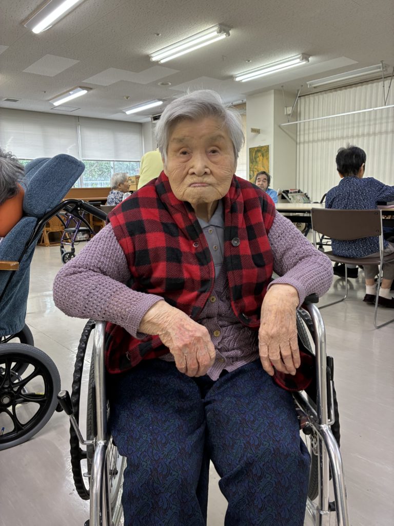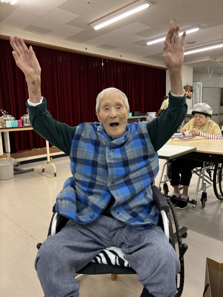 まずは、100歳以上のご利用者、米寿のご利用者をお祝いし、今年は園からベストをプレゼントをさせていただきました。