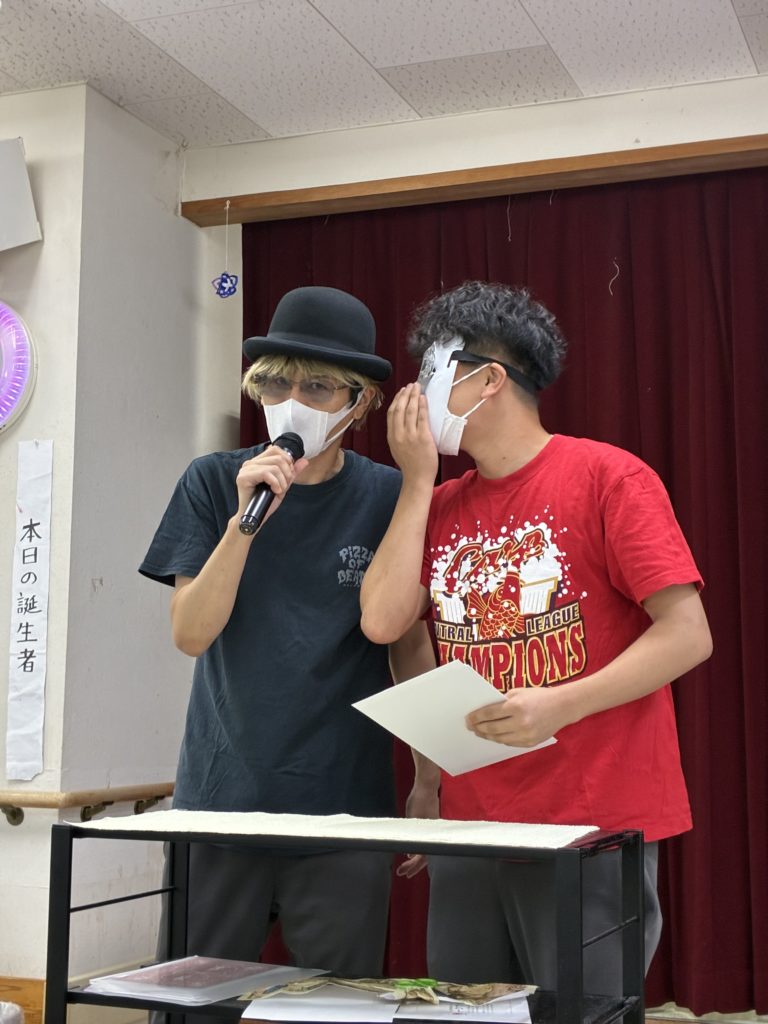 お腹もいっぱいになった後は、職員による余興が始まります。