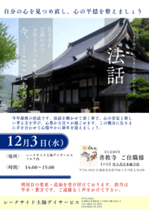 🕊️12月3日(水)法話会のお知らせ/デイサービス